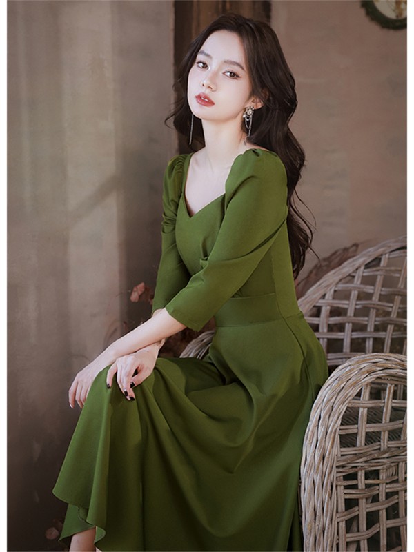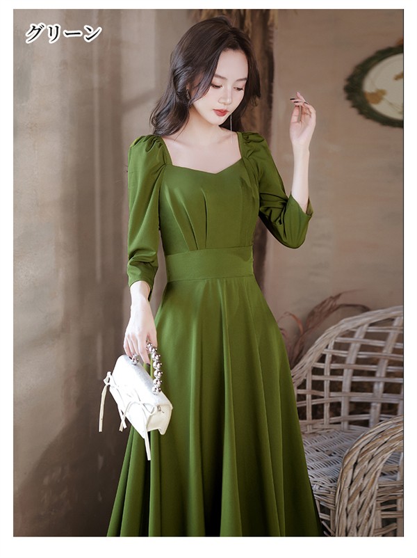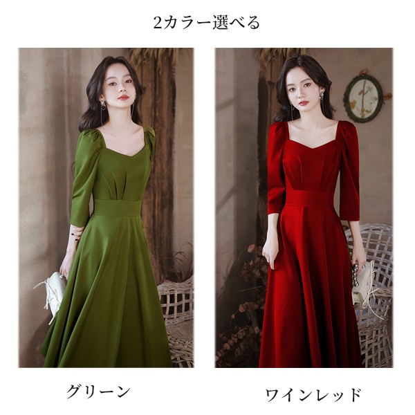 ドレス グリーン 大人 ピアノ 発表会 ミモレ丈ドレス ワインレッド 演奏会 結婚式 パーティードレス ミモレ丈 ワンピース フォーマルドレス イブニングドレス 20代 30代 成人式 高校生 中高生 卒業式 同窓会 お呼ばれ 演奏会用ドレス 二次会 フォーマル 披露宴