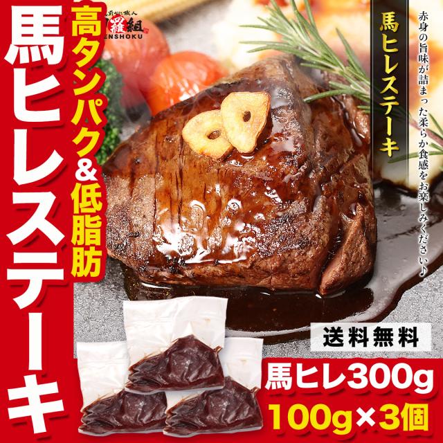 馬肉 高たんぱく&低脂肪♪ 馬ヒレステーキ 100g×3個 馬肉 肉 ステーキ ヒレ 焼肉 赤身 バーベキュー BBQ ヘルシー