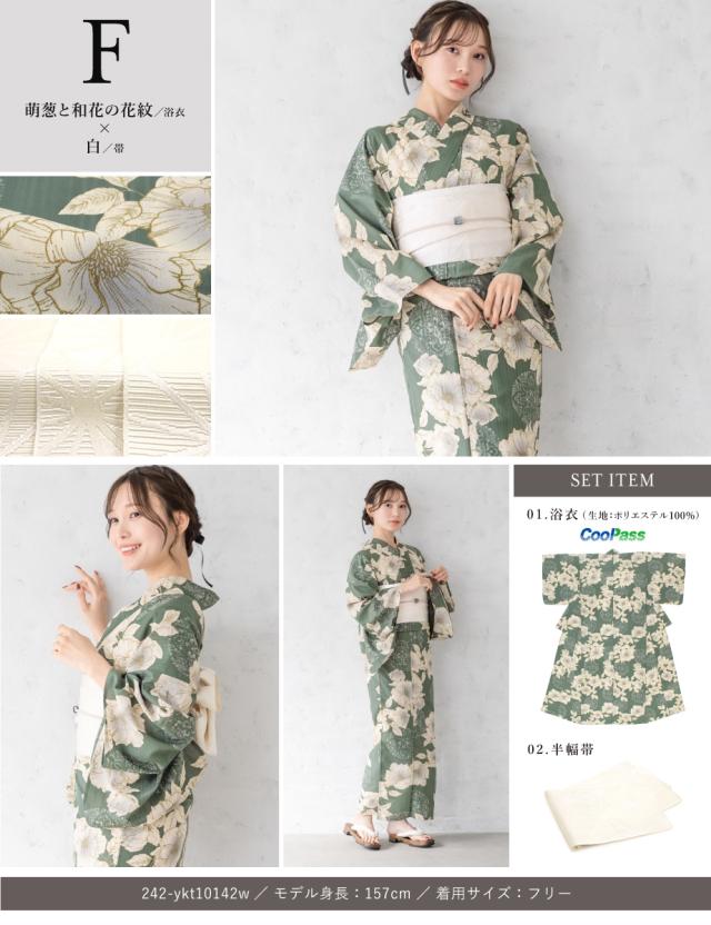 浴衣 セット レディース 浴衣セット 半幅帯 2024新作 大人 2点セット レトロ モダン 白 青 黄色 緑 紫 赤 グレー ベージュ 葉 菊 小花 帯 夏 フローロ Sサイズ フリーサイズ 送料無料