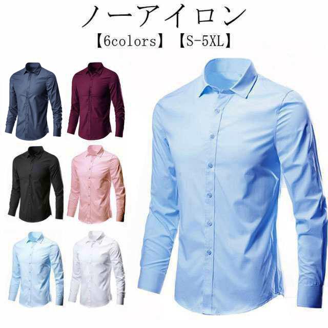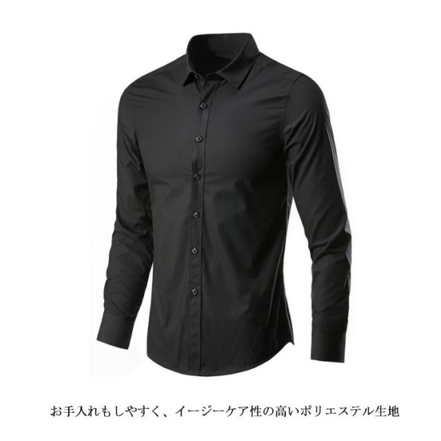 ワイシャツ カラーシャツ 長袖 メンズ 黒 ノーアイロン 紺 スリム Yシャツ ドレスシャツ カッターシャツ ビジネスシャツ 大きいサイズ 黒シャツ カジュアル パーティー 結婚式 二次会 ノンアイロン 形態安定 父の日