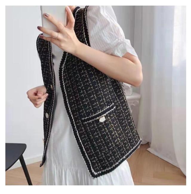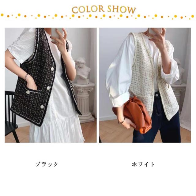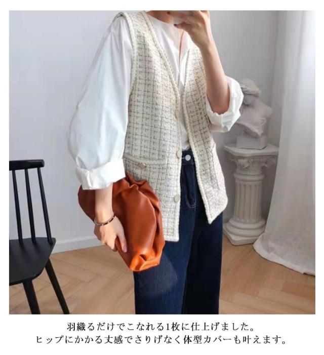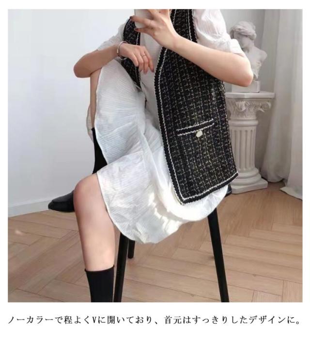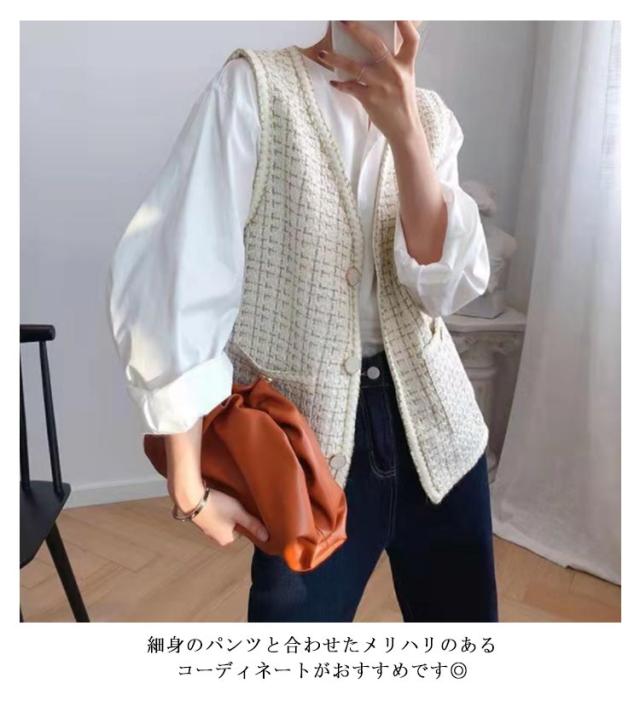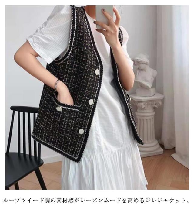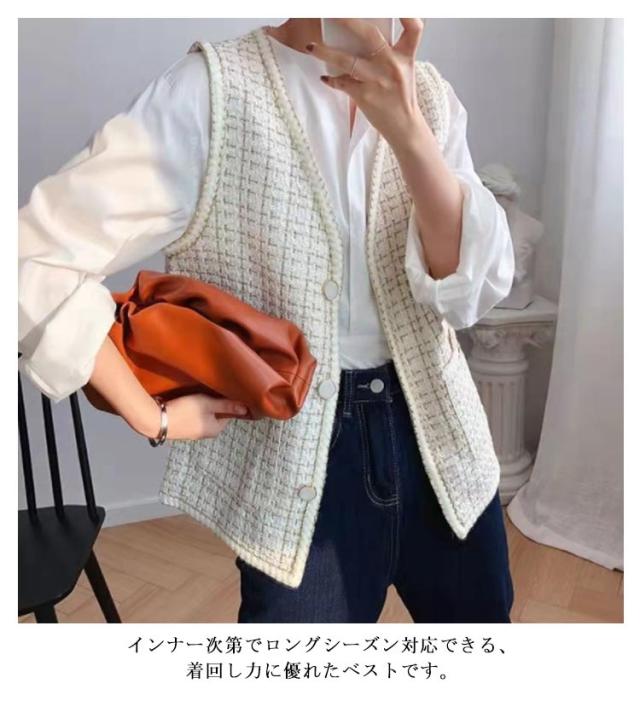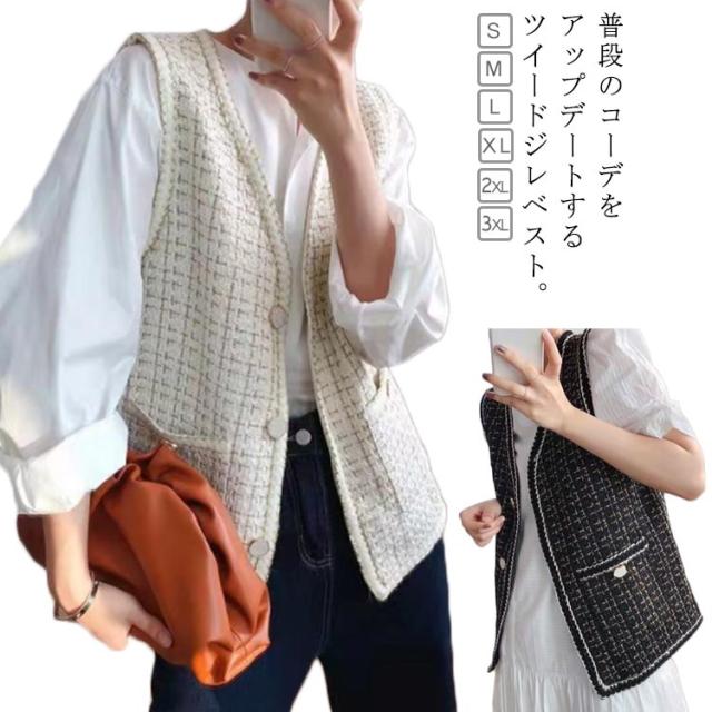 ツイードジレ ツイードベスト レディース ツイード ジャケット ベスト ジレ Vネック 高見え 細身 華奢 小柄 ツイード素材 羽織 アウター 秋 冬 春 ラメ 光沢 ツイード オフィスカジュアル カジュアル 送料無料 韓国 ファッション