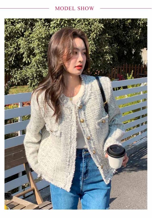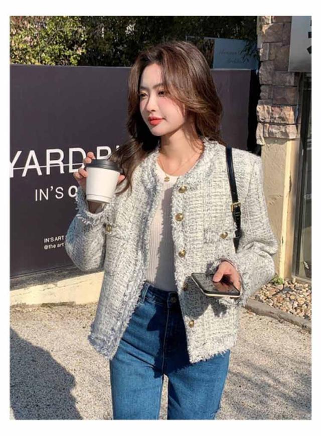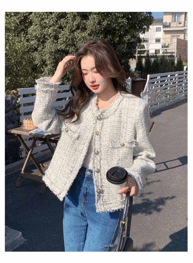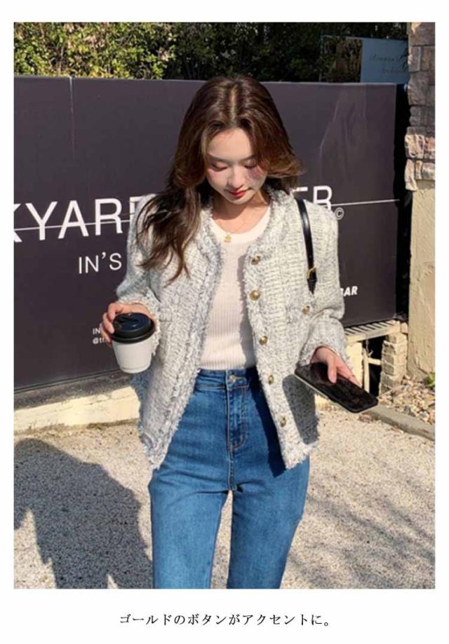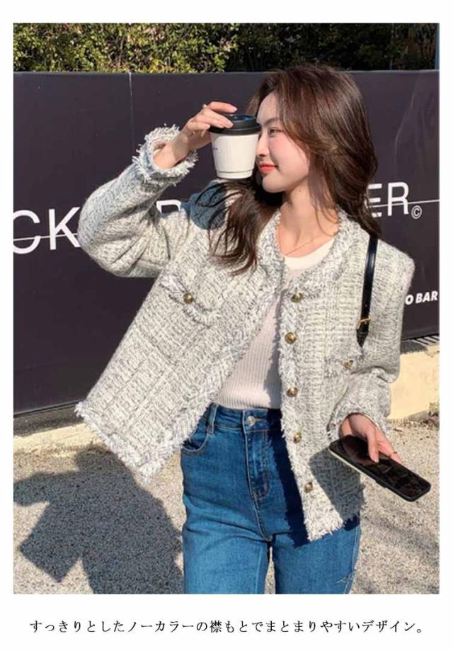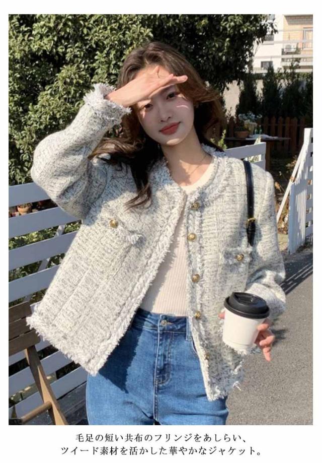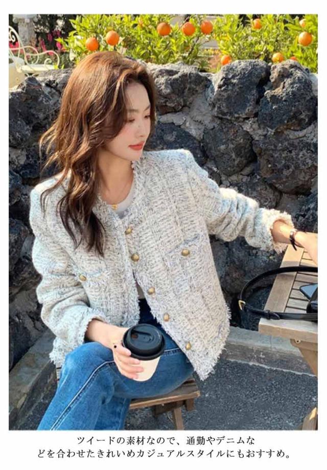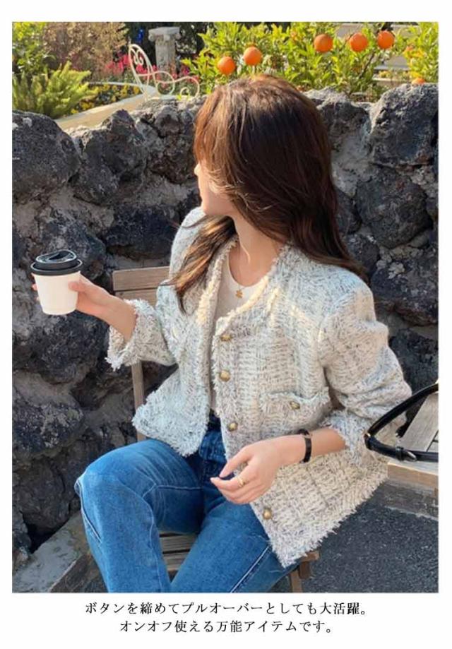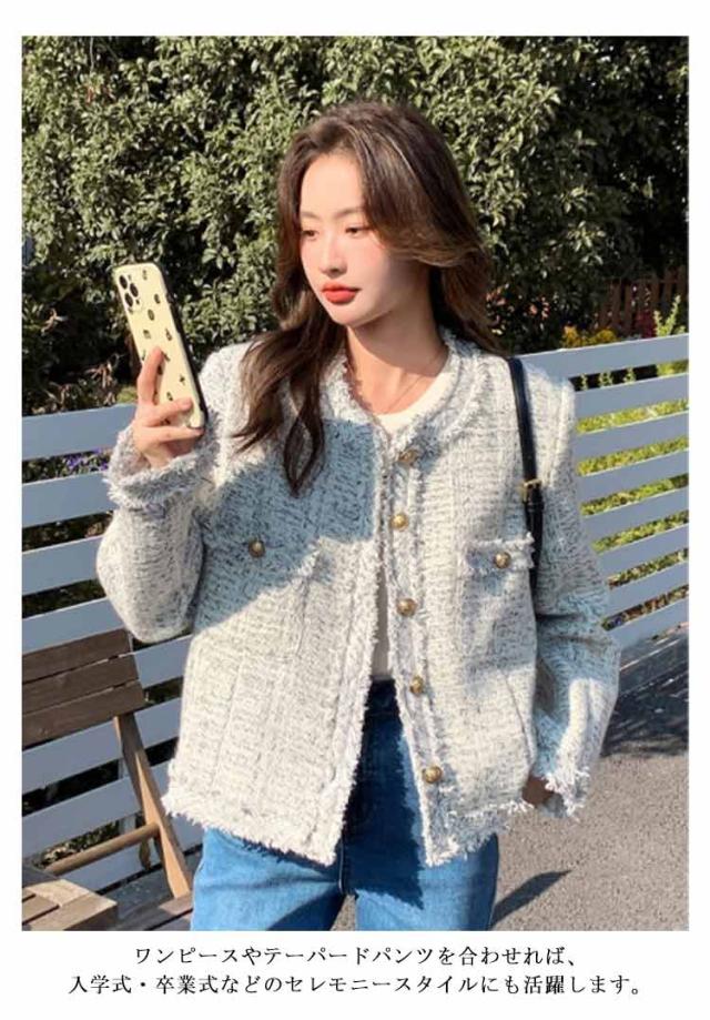 ツイードジャケット 春 レディース ノーカラー ツイード ジャケット フリンジ 金ボタン ショート丈 薄手 アウター 羽織り ノーカラージャケット 裏地付き 入学式 卒業式 セレモニー 学校行事 フォーマル 普段使い 通勤 2024春夏 オフィスカジュアル