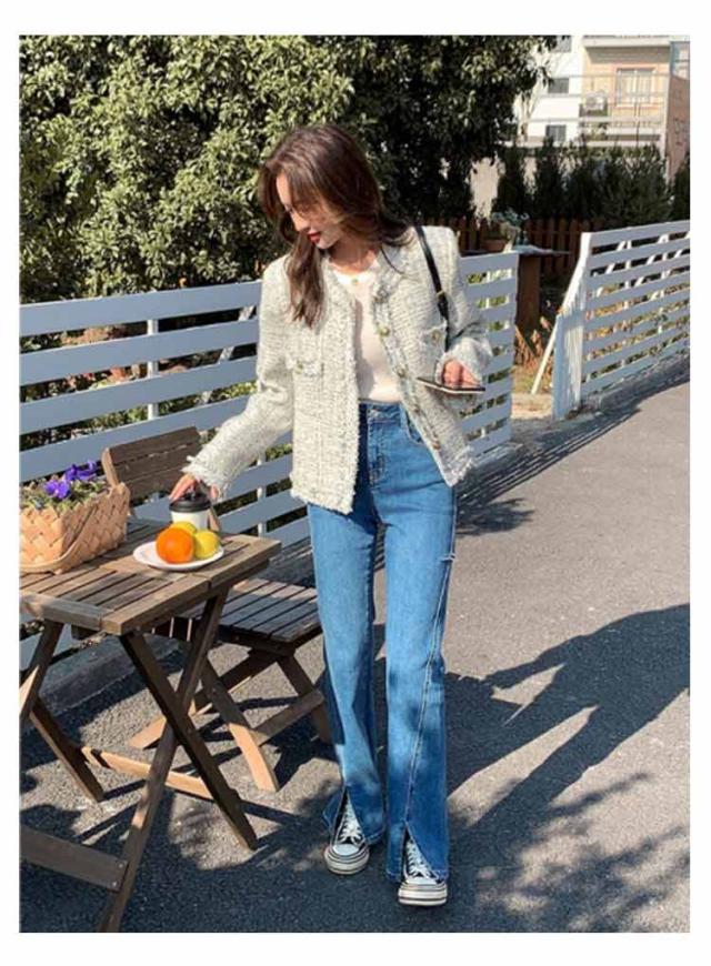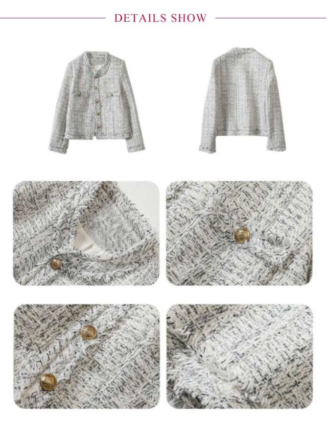 | 春の軽アウターとしても、オケージョン対応にも活躍できるツイードのノーカラージャケット。 毛足の短い共布のフリンジをあしらい、ツイード素材を活かした華やかなジャケット。 すっきりとしたノーカラーの襟もとでまとまりやすいデザイン。 ゴールドのボタンがアクセントに。 ワンピースやテーパードパンツを合わせれば、入学式・卒業式などのセレモニースタイルにも活躍します。 ツイードの素材なので、通勤やデニムなどを合わせたきれいめカジュアルスタイルにもおすすめ。 ボタンを締めてプルオーバーとしても大活躍。オンオフ使える万能アイテムです。 | |