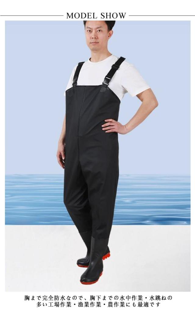 | 海に川に湖に!立ち込んで釣りをするなら必須アイテムのウェーダーです☆ 胸まで完全防水なので、胸下までの水中作業・水跳ねの多い工場作業・漁業作業・農作業にも最適です♪ 通気性が良い生地およびPVCコーティング仕上げ、耐水性、耐酸性、耐アルカリ性といった性質を持ちます。 ちょっとした小物や鍵も入れられる、便利な胸ポケット付。 滑り止め靴底で、渓流、小池、泥沼などの中に渉っても安定的です。苔生した場所や海苔や海草のついた岩場でも滑りにくく安心。 H形のサスペンダーは調整可能で、大きいサイズもご用意しており、様々な体型にフィットします。 女性も男性も着れる小さいサイズから大きいサイズまで揃った12サイズ。 土砂災害、土砂崩れ、台風、河川の氾濫、洪水など、万一の災害時の復興やボランティアの際に。防災の備えとして。 | |