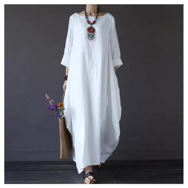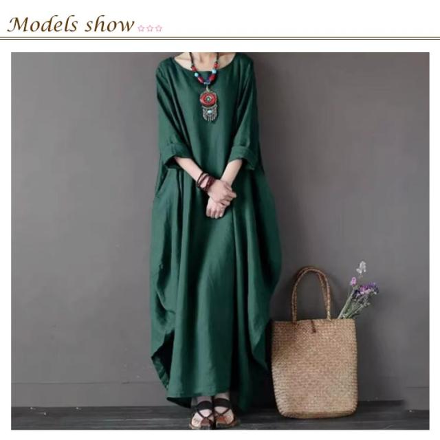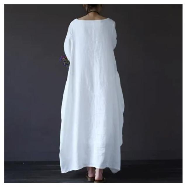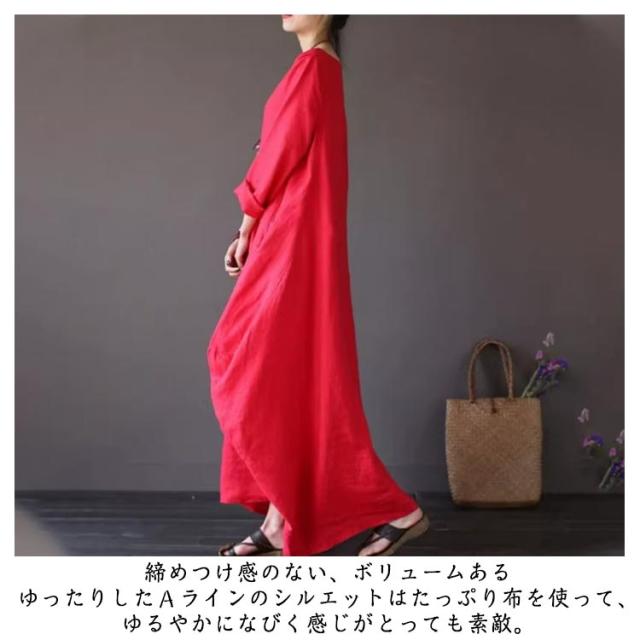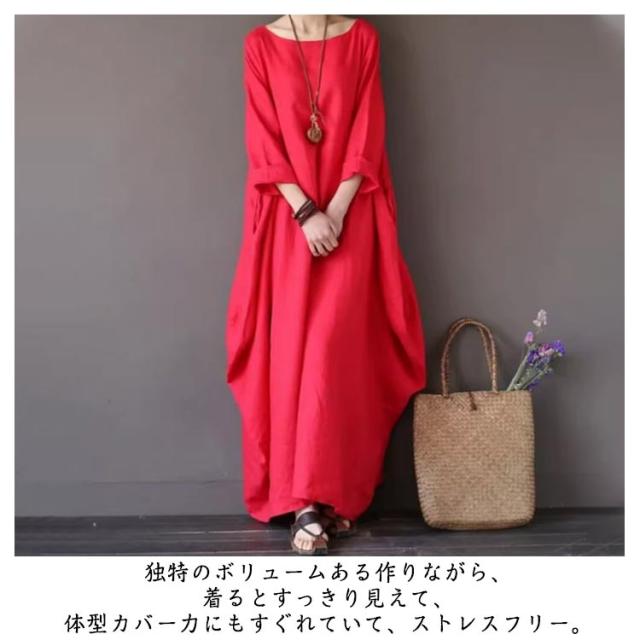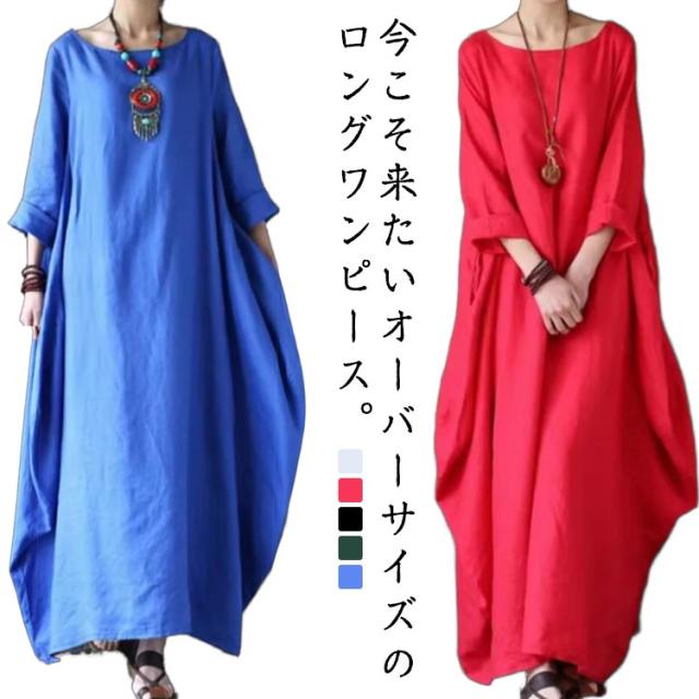 マキシワンピース オーバーサイズ ワンピース ボリューム マキシ丈 長袖ワンピース クルーネック ゆったり 体型カバー 30代 40代 50代