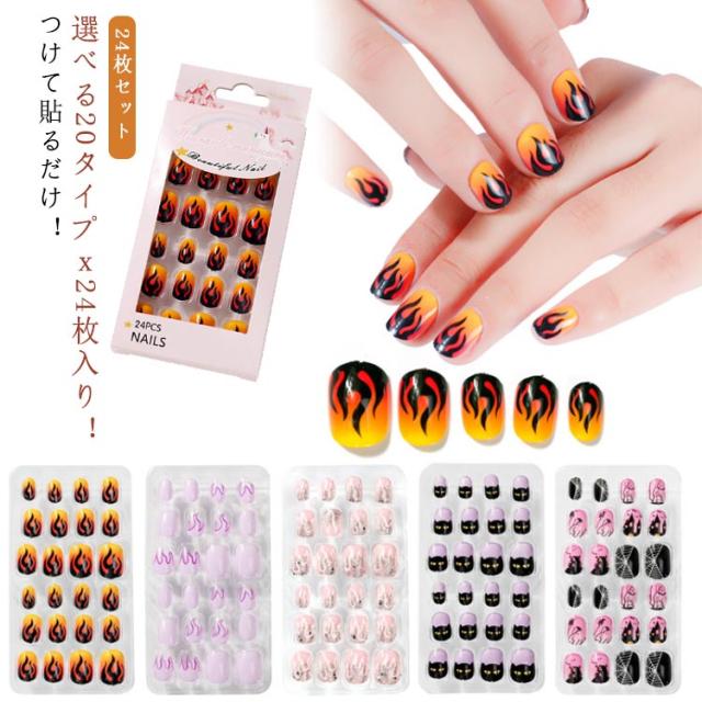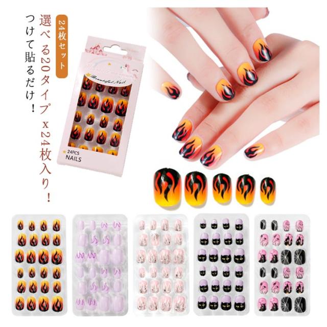 ネイル 貼るだけ 子供用 ネイルチップ 24枚セット 20タイプ ハロウィン 女性 女の子 キッズ用 ネイル 付け爪 こどもネイル 美容 ネイルサロン 安全 ネイル チップ かわいい ネイルアート ハロウィーン パーティー 結婚式 誕生日 プレゼント 送料無料