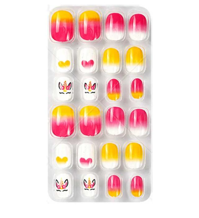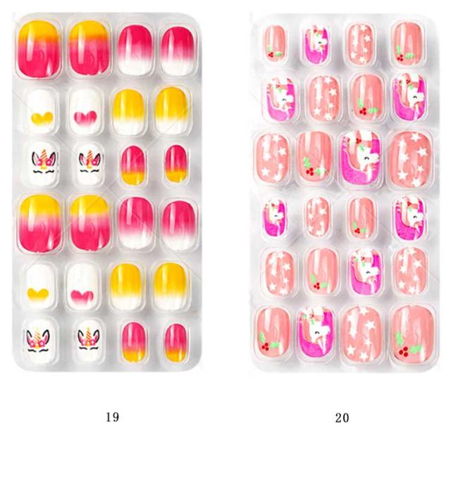 | 選べる20タイプx24枚入り!つけて貼るだけ! 簡単に取り付けできるキッズ用ネイルチップ。 両面テープで付けられるので手軽で便利です。 20種ものデザインで指先が可愛く華やぎます。 お休みの日のおしゃれとして楽しめます。 | |