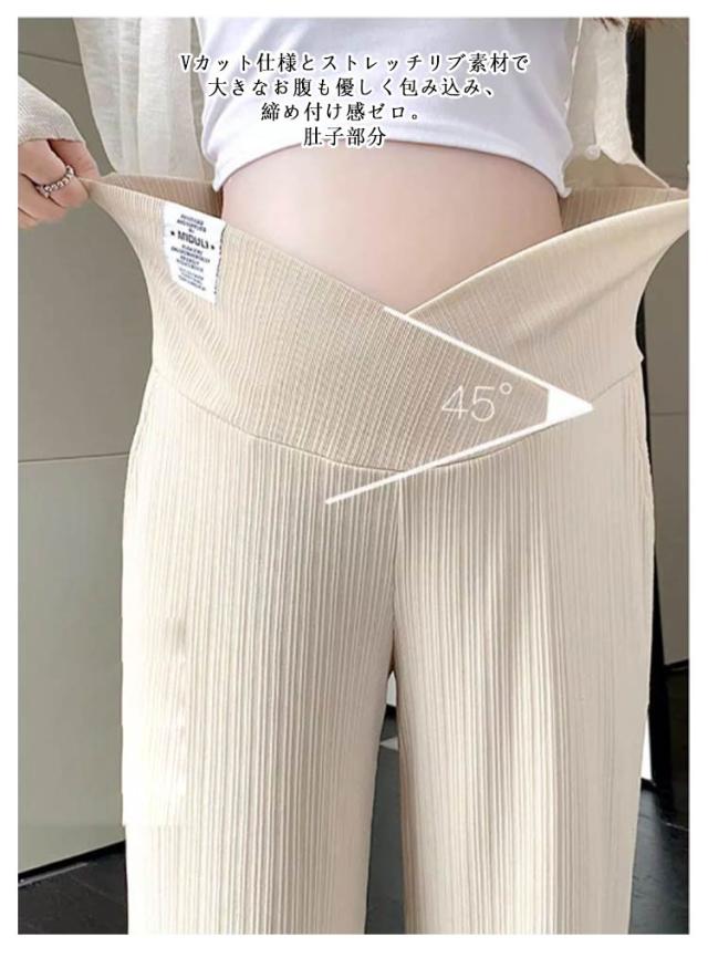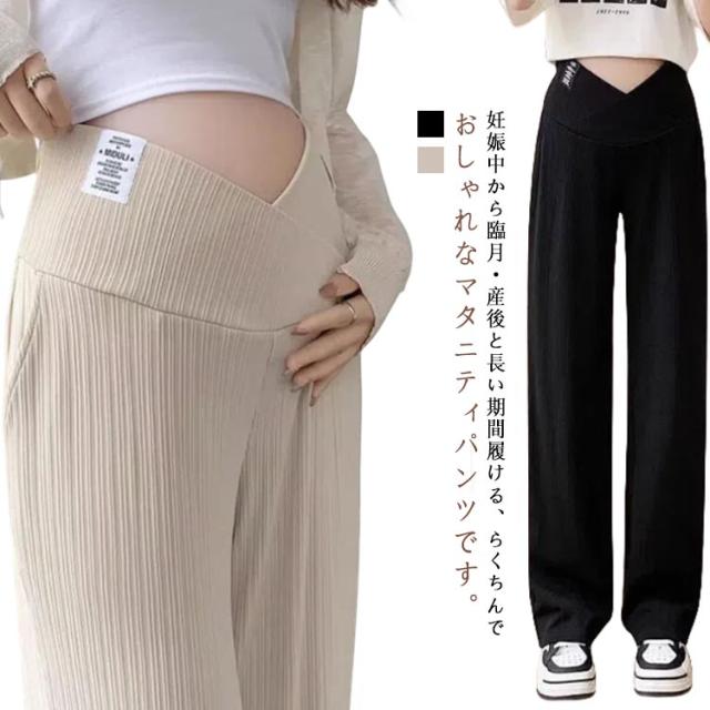 マタニティパンツ 美脚パンツ ワイド リブパンツ 産前産後兼用 ワイドパンツ ストレートパンツ ストレッチ 伸縮性 おしゃれ 春夏 マタニティ ボトムス 長ズボン マタニティウェア 妊婦服 妊娠中 臨月 オールシーズン ルームウェア オフィス 送料無料