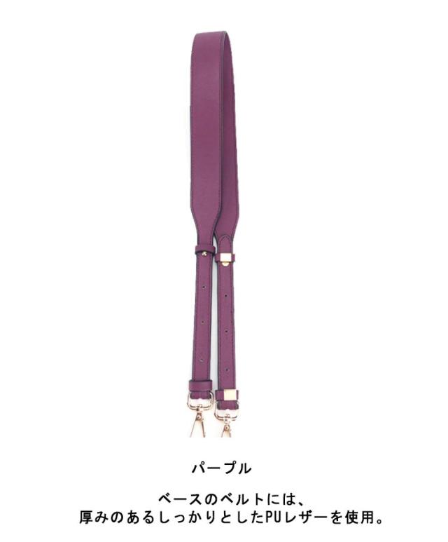| 付け替え用バッグストラップ。バッグを着せ替えて楽しめるショルダーベルト。お持ちのバッグに付け替えるとあっという間にお洒落に大変身! ベースのベルトには、厚みのあるしっかりとしたPUレザーを使用。 カジュアルにもキレイめにもこれ一つでいつものコーディネートをワンランクアップさせてくれます。 幅広ストラップで肩にかけても疲れにくい使い勝手の良い万能アイテム。 | |