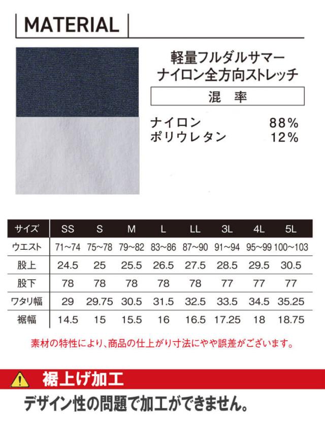 ・素材 : 軽量フルダルサマーナイロン全方向ストレッチ