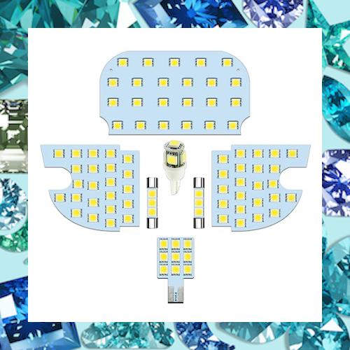 【製品パッケージ内容】フロントランプ: 23連 3チップ 5050 SMD×2、リアルームランプ: 23連 3チップ 5050 SMD×1、バ二ティランプ: 3連3チップSMD×2、カーテシーランプ: 9連3チップSMD×1、 ラゲッジランプ: 5連3チップSMD×1、内張剥がし工具の付属×1、取り扱い説明書×1