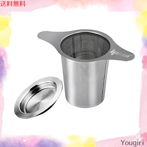 Ipow 茶こし ティーストレーナー ステンレス製 茶葉濾過 深型 マグ、カップ、ポット用茶漉し 双持ち手と蓋がある