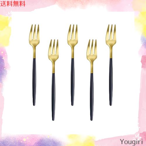 Easytoti フォーク ケーキフォーク デザートフォーク 5本セット13.5? オシャレ 可愛い ミニフォーク 18-8ステンレス鋼製 つや消し 食洗