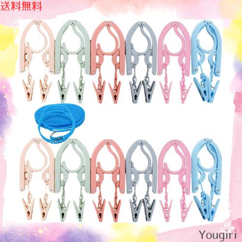 YOUOWO 旅行ハンガー 携帯ハンガー 12個入り 洗濯ロープ1本 旅行用ハンガー セット 折りたたみ式 旅行 出張など 洗濯 物干し 便利 軽量