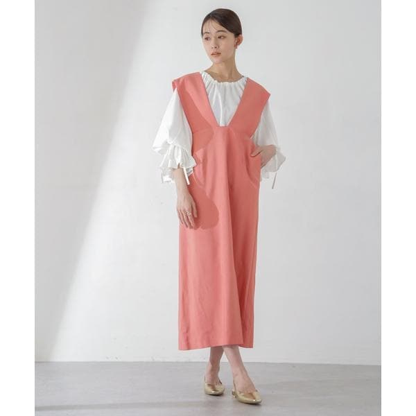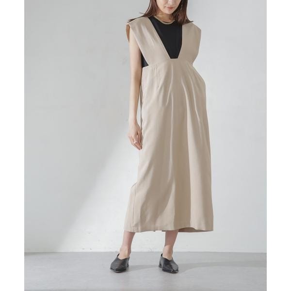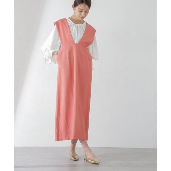 インナー次第で着こなしのアレンジを楽しめるジャンパースカート。抜け感とシャープな顔周りを演出してくれる前後深く開いたVネックデザインと、Iラインのシルエットが大人っぽく着こなせるポイント。合わせるアイテムやスタイリング次第で幅広いスタイルを楽しめるから、シーズンレスで活躍が期待できそう!