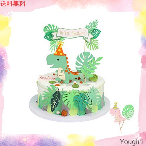 ケーキトッパー 誕生日ケーキ飾り恐竜 happy birthday 緑の葉 夏 飾り 女の子 男の子 誕生日 パーティー 飾り…