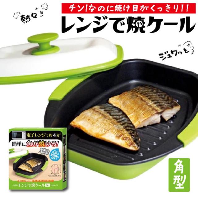 レンジで焼ケール 角型 角 TKSM-33 角形 電子レンジで焼き魚 レンジ 専用 焼き魚 プレート レンジ調理器 焼き魚 レンジ調理機 レンジ調理用品 レンジ 温めるだけ 焼き料理 魚 焼く 電子レンジ用 グリルパン 電子レンジで魚が焼ける