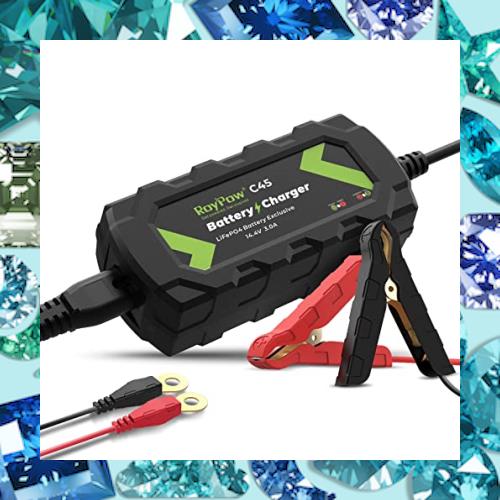 RoyPow リン酸鉄リチウムイオンバッテリー充電器 14.4V3A バッテリーチャージャー トリクルチャージ バッテリー活性化LEDランプ 逆接続&