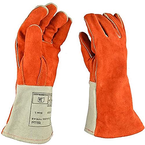 Weldas 溶接手袋 ロング バーベキュー BBQ 薪割 耐熱 耐火 5本指 溶接グローブ 柔らかい 牛床革 レザー 裏綿付き 1双 (XL)