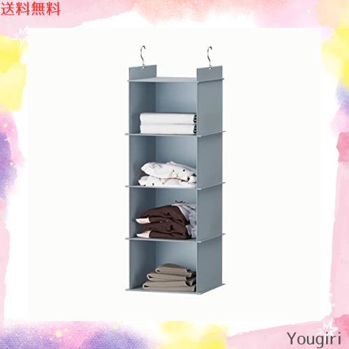 YOUDENOVA 吊り下げ収納 衣類ラック 収納 クローゼット 水洗い可能 防湿防カビ 折りたたみ(グレー、4段)