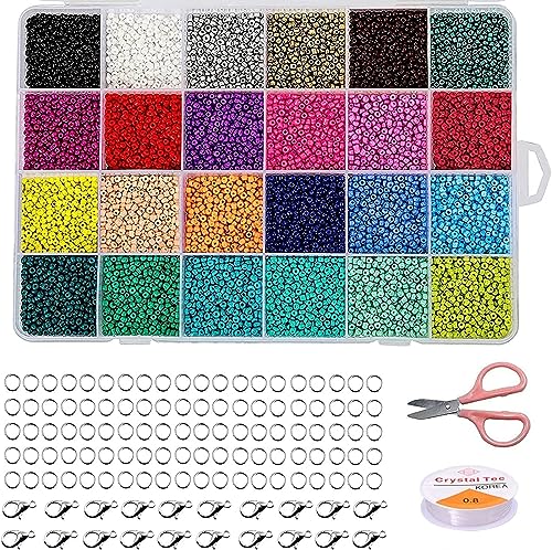 ・?パッケージ内容:24色のポニーガラスシードビーズ14400個、ロブスタークラスプ20個、紐1本、オープンジャンプリング100個がプラスチックボックスに入っており、ブレスレット、ネックレス、ジュエリー作りに最適です。