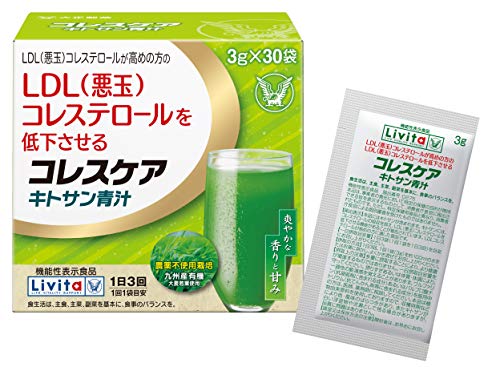 大正製薬 コレスケアキトサン青汁3g×30袋 機能性表示食品 LDL悪玉コレステロール 高めの方に キトサン 青汁 有機大麦若葉 九州産 超微粉