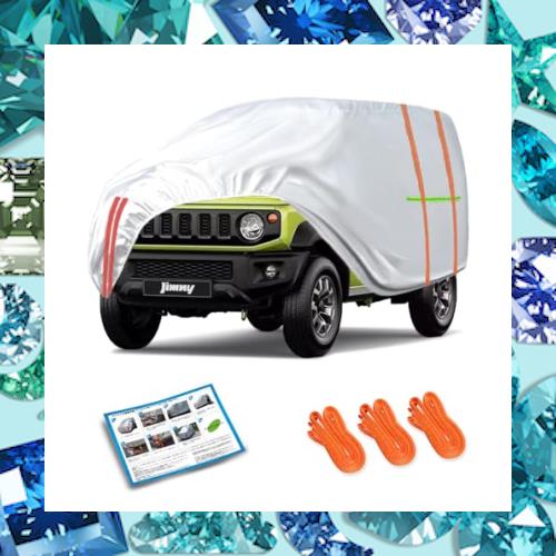 【専用車種デザイン,取付収納簡単】:ジムニー用に特別にカスタマイズされた車のカバー、ジムニー シエラJB74 JL JC Jimny sierraに適しており、サイズは 3.6X1.7X1.75M です。 (ジムニーと同サイズの軽自動車も使用可能です。ご購入前に計測してください。) 広いスペース設計、後部にスペアタイヤを収納可能。ボディカバー には、3つの非常に長い防風ストラップ、取扱説明書、収納袋が付属しています。保管に非常に便利です。
