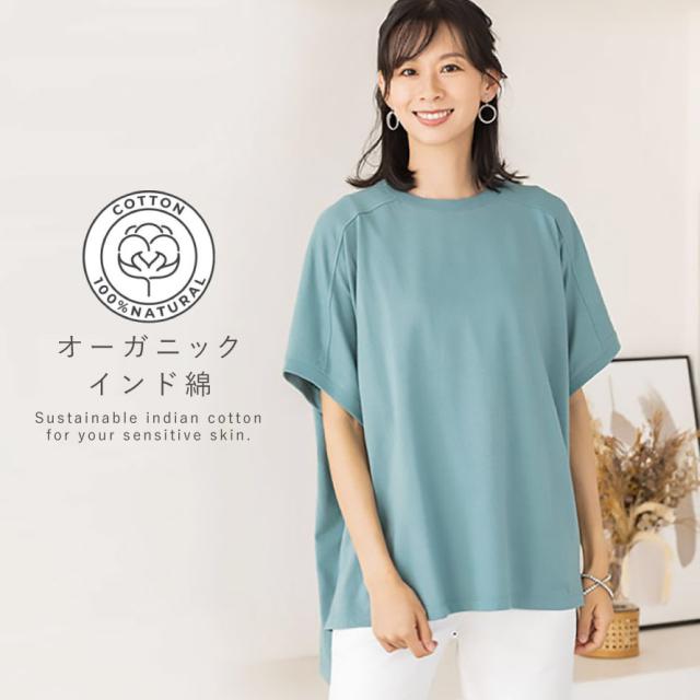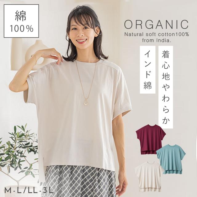 ドルマンTシャツ やわらかい オーガニックコットン 綿100% インド綿100% コットン100% 綿 インド綿 シンプル ゆったり 締め付けない ルームウェア リラックスウエア 体型カバー 30代 40代 50代 60代 肌に優しい 敏感肌 低刺激 M L LL 3L ナチュラル カジュアル 部屋着 ...