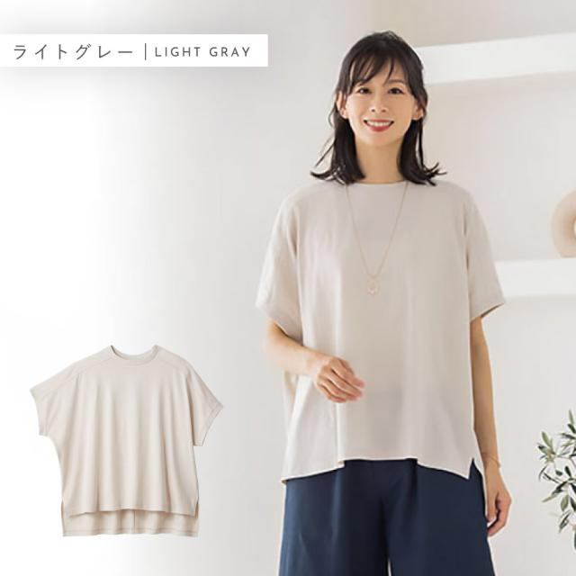 身丈は前後差をつけており、脇にはスリット入り。気になるヒップまわりを体型カバーでき、細見え効果があります。