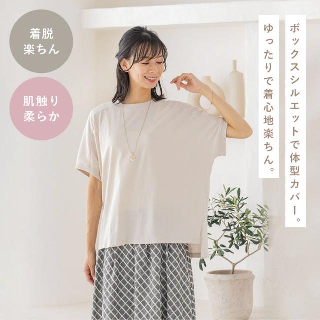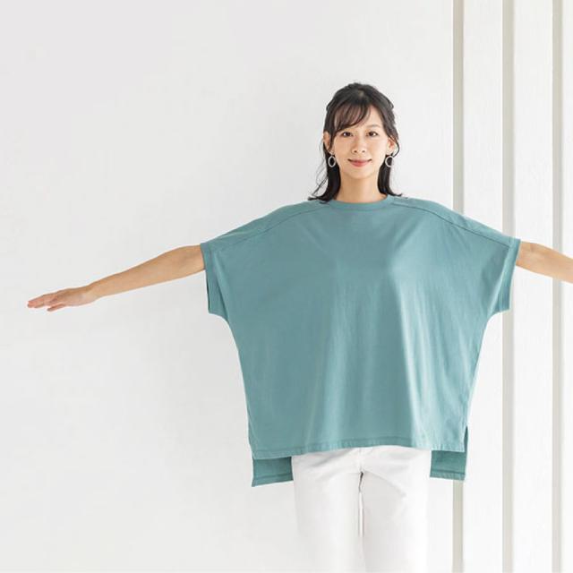 ボックスシルエットでゆったりと着られて着脱も楽ちんのドルマンTシャツ。