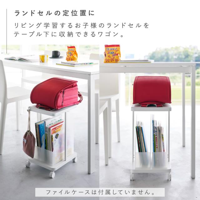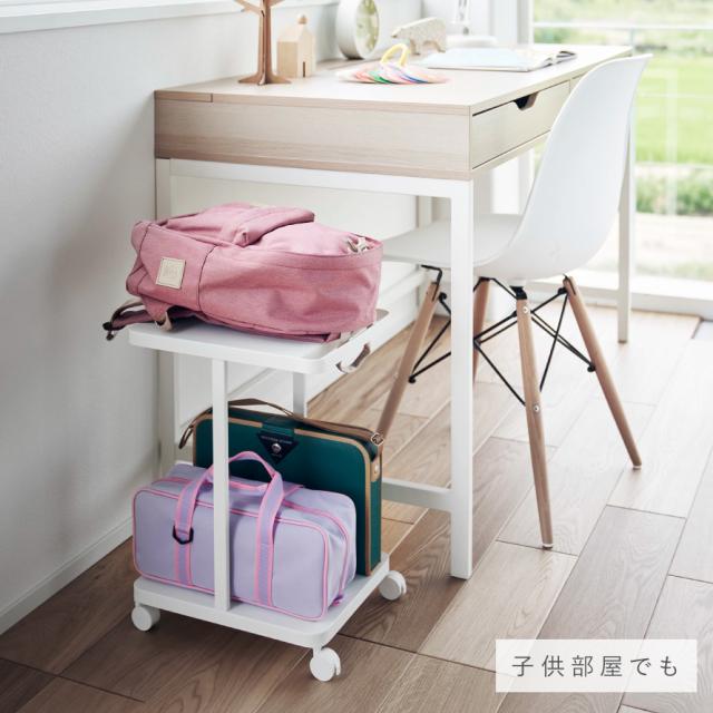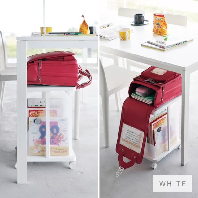 リビングで学習するお子様のランドセルをダイニングテーブルの下に収納できるワゴン。子供部屋では、ランドセルの定位置に。お片付けもラクラク。