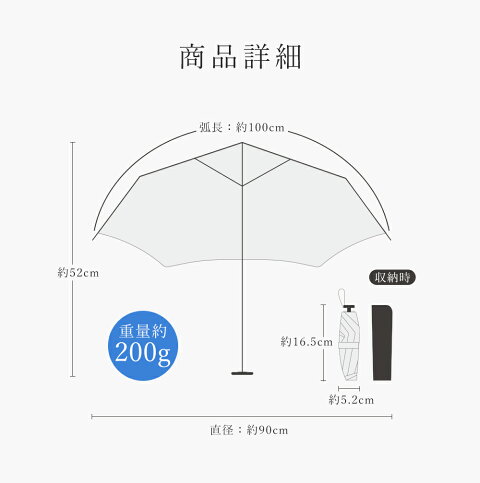◎突然の雨や眩しい日射しに大活躍してくれます。折りたたむ時の長さは16.5cm。