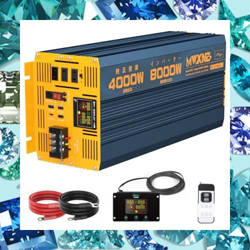 【2023最新型・有線/無線リモコンつき】MWXNE インバーター 正弦波 12v 100v 4000w 最大8000W DC12V(直流)をAC100V(交流)に変換 PD60W Q
