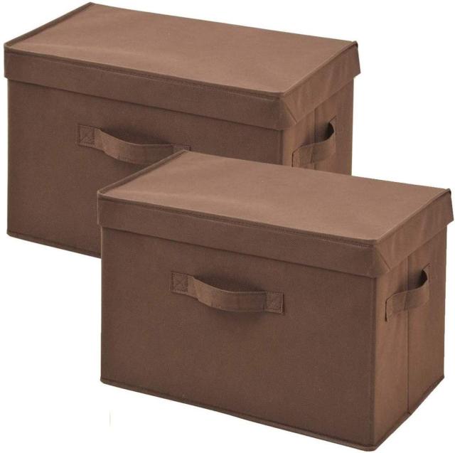 山善 ふた付き 収納ボックス 幅38×奥行25×高さ25cm 取っ手付き カラーボックス対応 完成品 ブラウン 2個組 YTCF-2PF(BR)