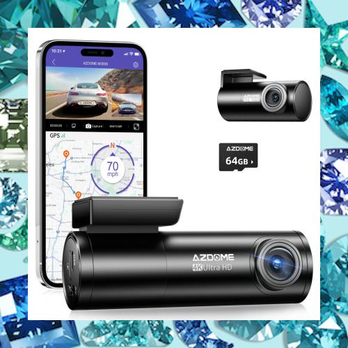 ?【5GHz WiFi搭載+GPS搭載+64GBカード】?2.4GHz Wi-Fiより転送速度が最大5倍速い5GHz Wi-Fiを追加しました。専用アプリAZDOMEを利用して、万が一事故や車上狙いがあった時、スマホと接続するだけで記録された動画を確認することができます。より速くデータを転送しますので、録画の確認、再生だけではなく、ダウンロードも可能です!旅行中に素敵な録画を撮って、SNSを通じて家族や友達にシェアしましょう。 ?GPS機能にも対応していますので、専用AZDOMEプレーヤーで走行軌跡やリアルタイムの速度、位置(緯度経度だけでなく地図上に表記)など走行状態に関する情報を記録して事後に確認する事が可能です。 ?現在市販されている4Kドライブレコーダーの多くに32GBのカードが付属していますが、すぐに容量が一杯になって長時間の録画ができなくなります。AZDOME M300Sは64GBのmicroSDカードが付属しておりますので、別途カードを購入する必要が無く、容量不足になる心配が少なくなっています。事故などによる記録した映像の破損を抑え、重要な証拠を保護することができます。