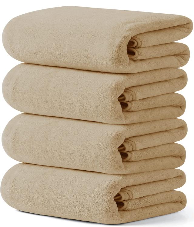 バスタオル HOSUR 4枚 タオルセット ベージュ ふわふわ 肌触り 吸水速乾 ホテル仕様 タオル エステタオル 業務用 マイクロファイバータ