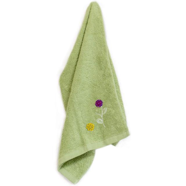 トイレマットとおそろいカラーのシンプルなタオルに、ブローチのようなアップリケが刺繍されたエトフシリーズ。アップリケと刺繍糸の色合いが個性的でおしゃれなタオルです。何気ないときめきを感じる、おしゃれなデザインに仕上げました。ふんわりとしているのは、長めのパイルがぎっしりつまっているから。繰り返しのお洗濯にも耐える丈夫なタオルです。
