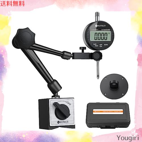 Neoteck デジタルダイヤルゲージ マグネットベース セット 精度0.01 mm 測定範囲0~25.4mm レバレッジ用 フレキシブル磁気ベース 自動オフ