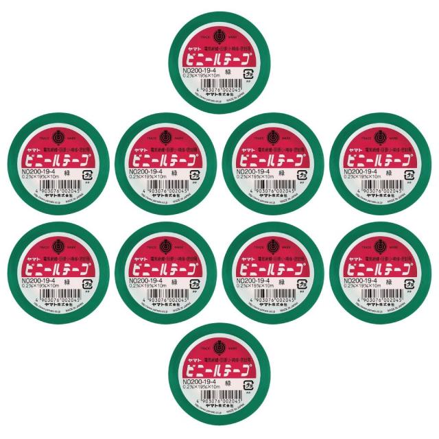 ヤマト ビニー ルテープ 19mm幅 10巻 NO200-19-10PR 緑