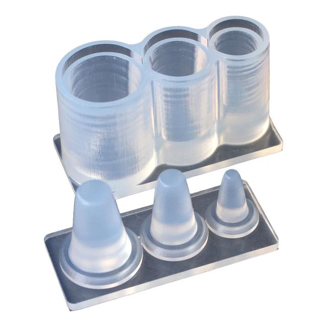 ■サイズ/出来上がり:φ14×H20/φ11×H16/φ8×H12mm モールド本体:W44×H27×D18mm ■素材/シリ コーンゴム ■入数/1組入