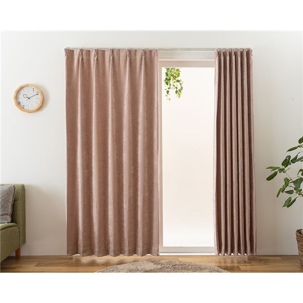 遮光カーテン 幅200cm×丈180cm 1枚 ローズ 2級遮光 洗える ウォッシャブル 日本製 国産 無地 アジャスターフック タッセル付き カーテン リビング 送料無料