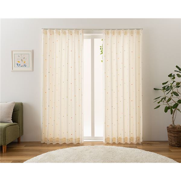 商品仕様: カーテン 幅100cm×丈155cm ドット 2枚 洗える 日本製 形状記憶加工 アジャスターフック タッセル付き アリア MIX リビング