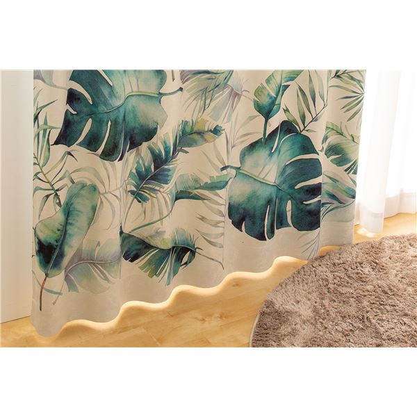形状記憶加工付きのボタニカル柄 国産 ウォッシャブル カーテンカーテン ドレープカーテン インテリア家具 インテリア雑貨 リビング ダイニング 子供部屋 子ども部屋