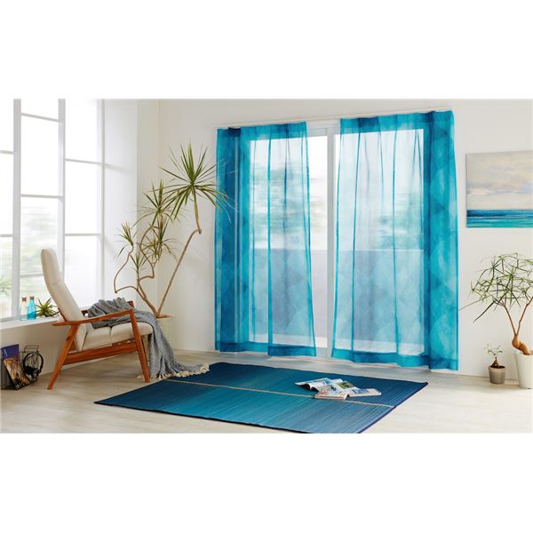 (キーワード: 高級 流行 デザイン おしゃれ オシャレ 耐久 清潔 機能 遮光 TCC530174 RDA0003589978 4724109 インテリア 寝具 カーテン ブラインド カーテン ブラインド 収納 新生活にぴったり 洗える ウォッシャブル 国産 レースカーテン ブルー2枚セット 幅100cm×丈218cm 日本製 アジャスターフック付き ラーゴ リビング ダイニング ベッドルームに最適 青)