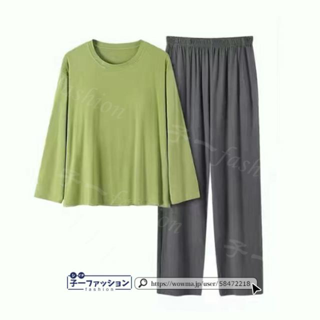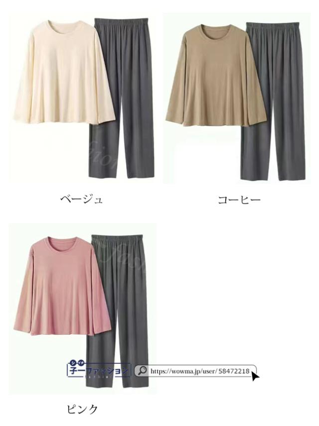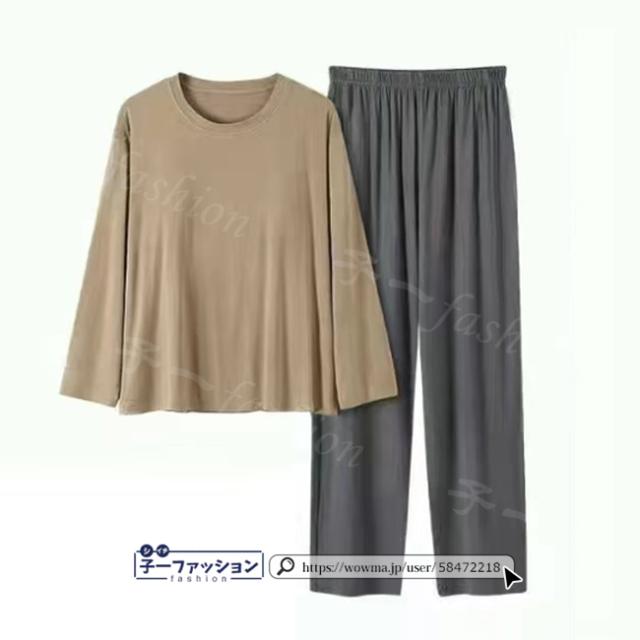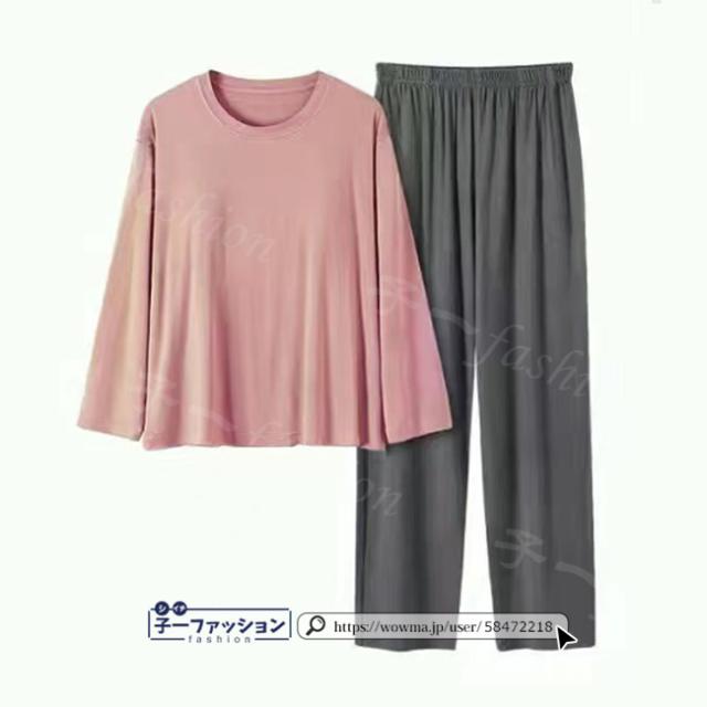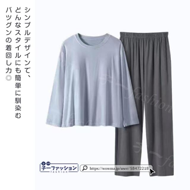 無地なので別々でも着回せる優秀さ、お出かけにはもちろんのこと、お家でのくつろぐウェアとしてもオススメ。