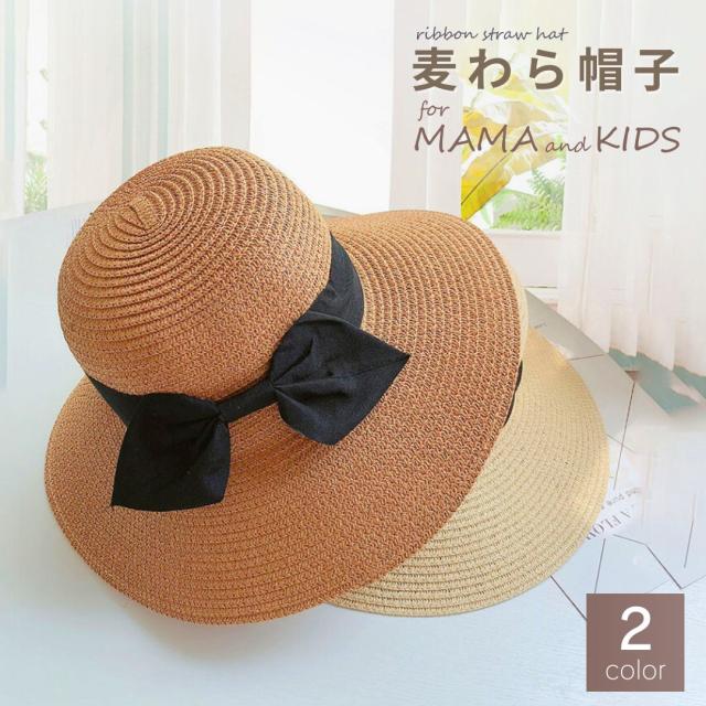 【在庫限り】帽子 リボン付きストローハット 母と娘おそろい リボン 麦わら帽子 ペアルック リンクコーデ 紫外線対策 熱中症対策 親子コーデ 親子おそろい 涼しい キッズ レディース メンズ ユニセックス 男の子 女の子 子供用 屋外 アウトドア