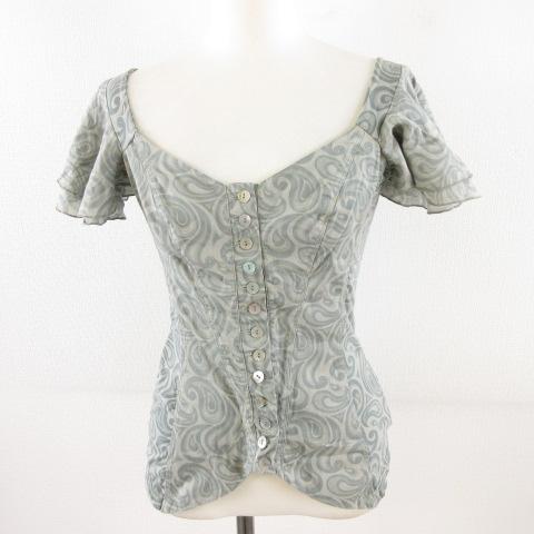 【中古】ヨーロピアンカルチャー EUROPEAN CULTURE シャツ キャップスリーブ 半袖 ペイズリー柄 ストレッチ グレー S