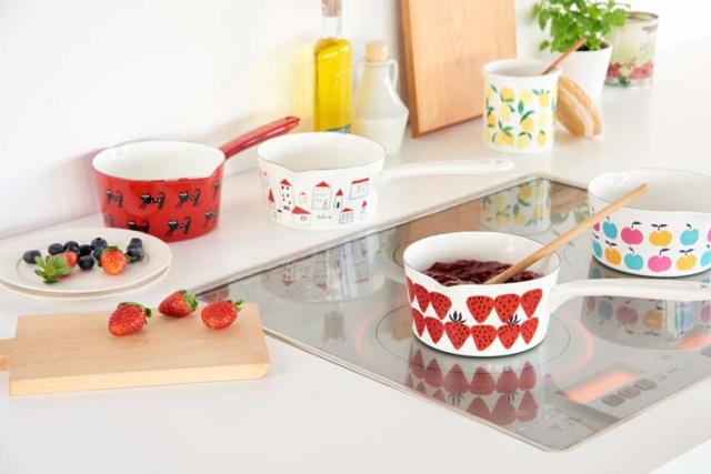 ※商品の性質上、焼成時に黒点や色むらの様に見える部位が生じる場合がございます。また、鋼板の切り口となる部分は色がかかりにくく、下地の黒いスジが多少見られることがありますが黒い部分もホーロー加工が施されております。このような場合でも、不良ではなく安心してお使いいただけます。※加熱中や加熱直後は取っ手が大変熱くなり、火傷の危険がありますので、必ずミトンやふきん等で取ってを持ってご使用をお願いします。※本商品シリーズは下地は中国国内で、絵付けから仕上げまで完成工程を日本国内で行った商品です。