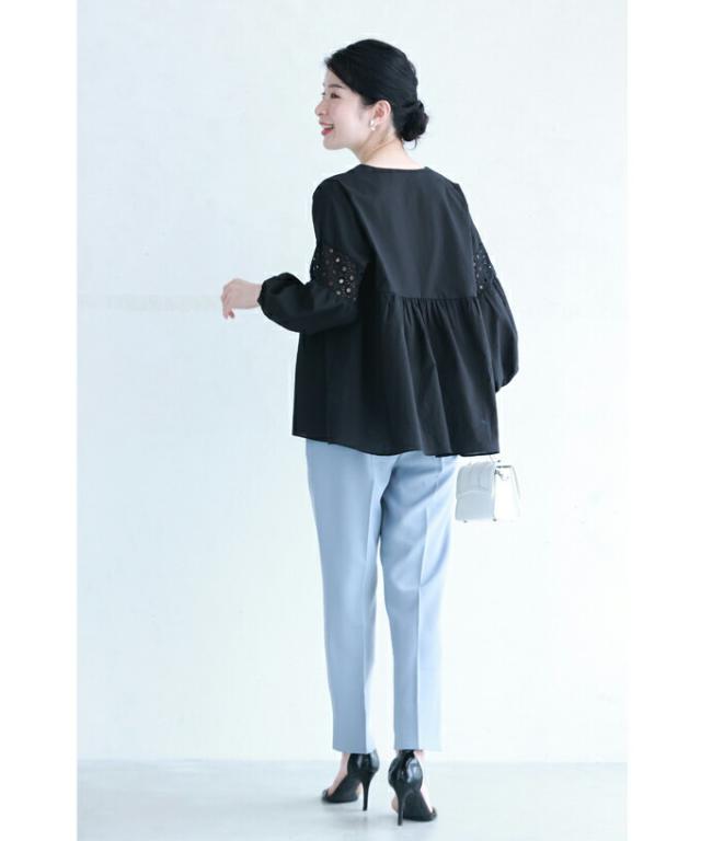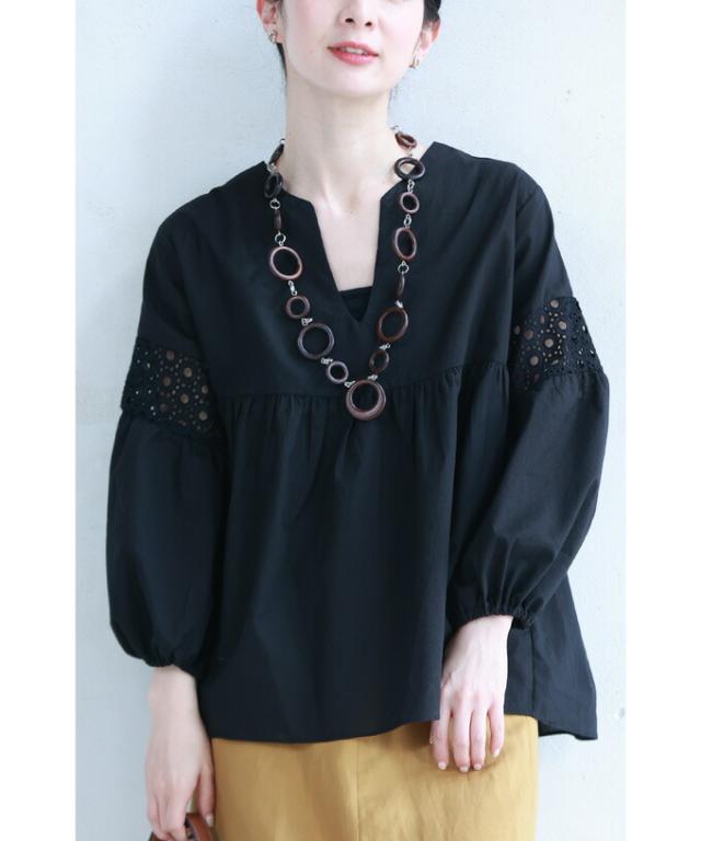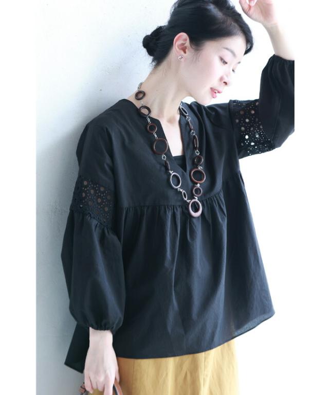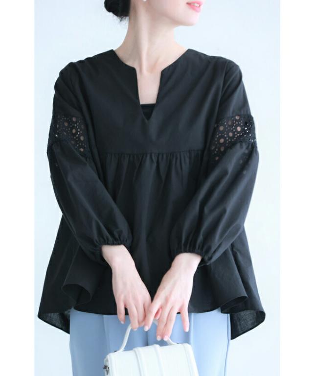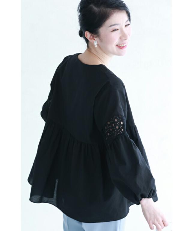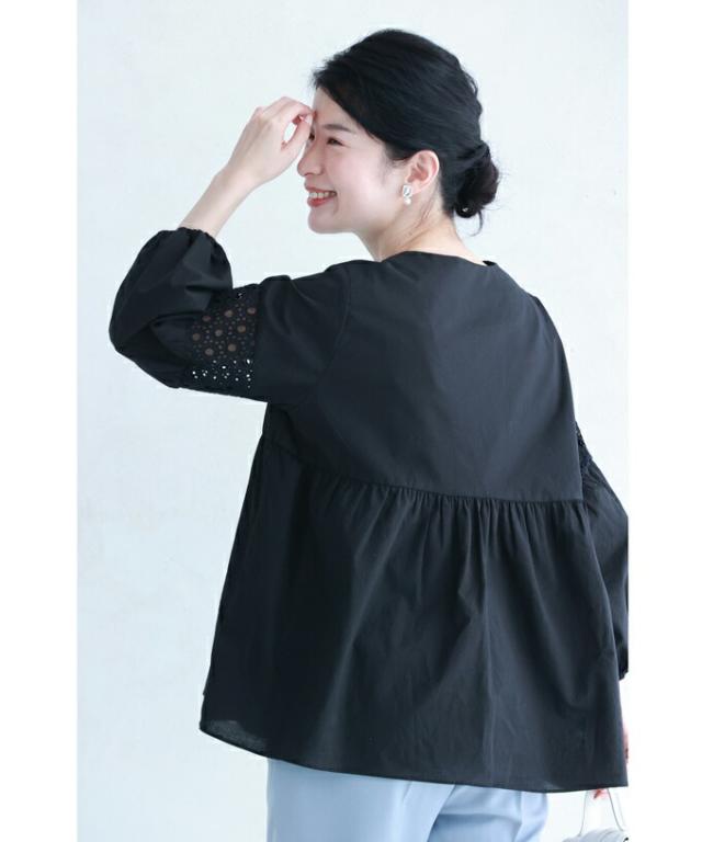 wkj00004 新作 新着 再入荷 CAWAII FRENCHPAVE フレンチパヴェ エレガント ベーシック カジュアル 可愛い かわいい カワイイ おしゃれ オシャレ お洒落 個性 個性的 定番 ベーシック 大人かわいい 大人可愛い 上品 女性らしい デザイン スタンダード ナチュラル きれいめ キレイめ シンプル フェミニン レディース レディースファッション 大人 ママ ミセス 30代 40代 50代 60代 黒 サークルレース 袖 涼やか Aライン ブラウス トップス 8分袖 八部袖 七分袖 7分袖 ふんわり袖 ぽわん袖 S M L フリーサイズ フリー 小さめ 小さめサイズ小さい 小さいサイズ 低身長 痩せ ほっそり 小柄 細身 標準サイズ 大きめシルエット 大きい 大きめ ビッグシルエット ぽっちゃり F サイズ自由 春 夏 春服 春物 夏 夏服 夏物 薄手 ブラック 黒 黒色 レース 綿 綿100% コットン コットン100% 天然素材 楽ちん 楽チン ラクラク 無地 ワンカラー ワントーン 体型カバー 体型隠し 体型隠れる 日常着 普段着 日常使い おでかけ 旅行 家族旅行 女子会 授業参観 保護者懇談会 三者面談