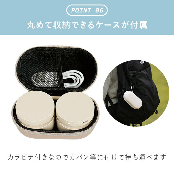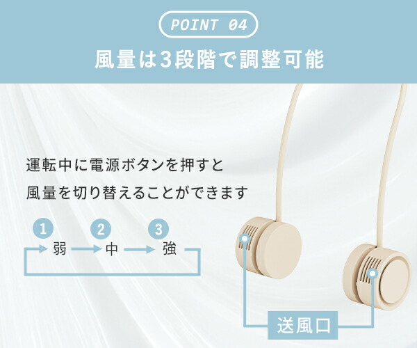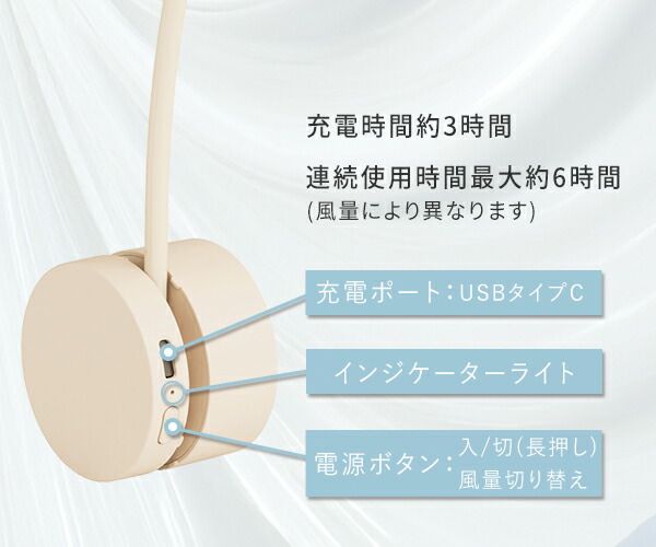 | 商品説明 | ●首にかけて両手を自由に使える扇風機 ●収納ポーチ付属で持ち運び楽々 ●内蔵電池:リチウムイオンポリマー電池 1600mAh ●充電時間(約):3時間 ●連続使用時間(約)1.5-6時間(選んだ風量により異なります) ●風量3段階切り替え可能(弱・中・強) ●セット内容:本体、USBケーブル(Type-C)、収納ポーチ、取扱説明書兼保証書 ※こちらの商品は2025年3月より仕様を変更しております ・型番:YNG-KRNF160→YNG-KRNF161 ・カラー:ベージュ/ホワイト/グレー→ベージュ/ブルー/グレー |